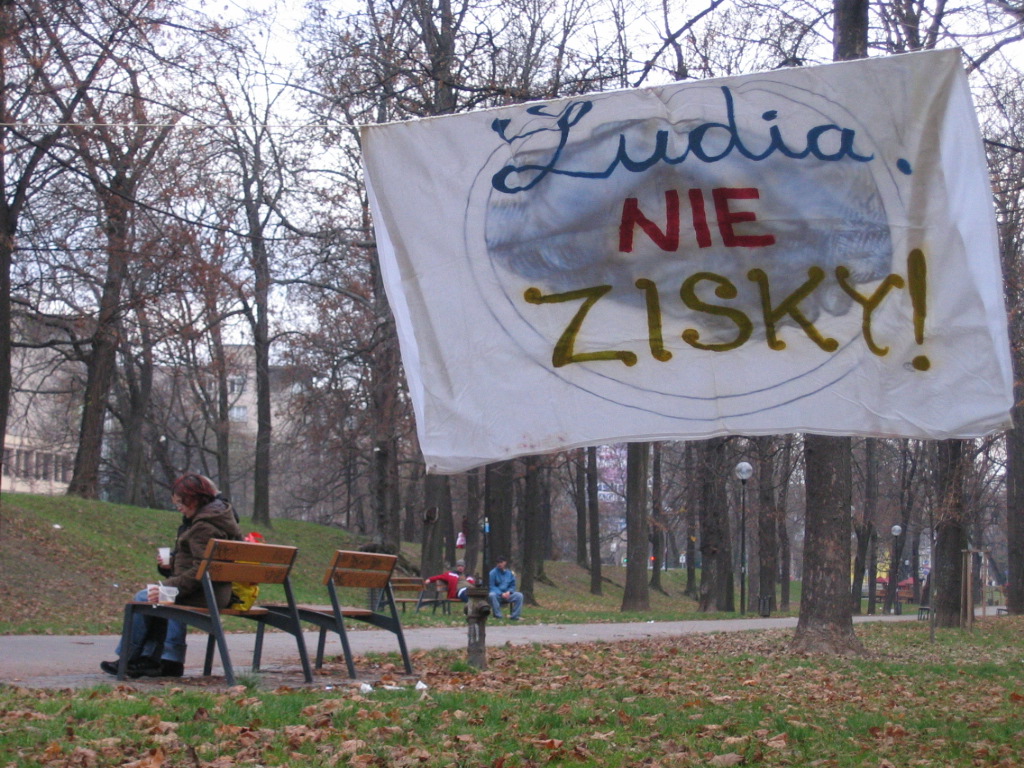 Tak dneska na Food not bombs ma opäť hriali „staré dobré časy“. Spolu nás bolo asi 25 ľudí, všetkých možných vekových kategórií (od prenatálneho veku, cez mládež až po starých ľudí) a oboch pohlaví a jeden pes Delfina.
