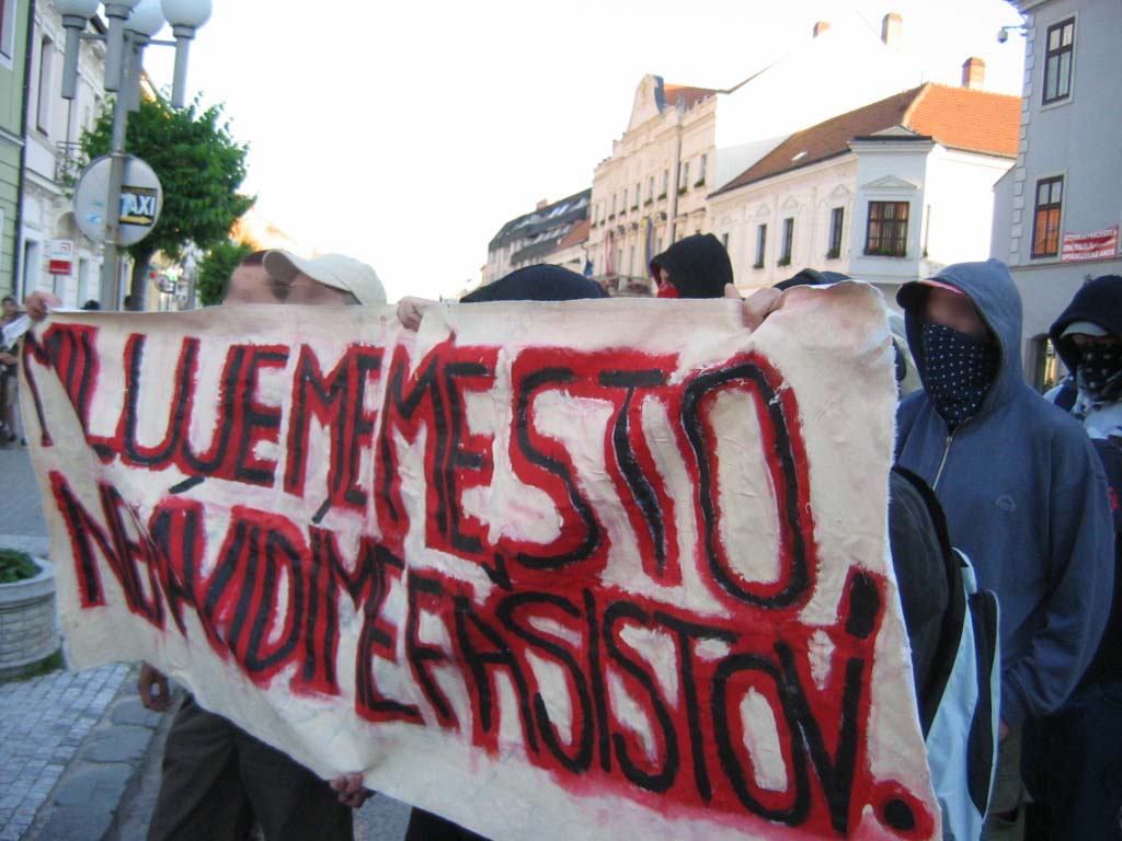 O 18:00 sa antifašisti vydali na námestie, kde už začínala agitácia kandidátov zo SĽS a SP. Za hlasitých antifašistických pokrikov sa antifas dostali až na okraj námestia. Tam ich zastavila mestská polícia. Náckovia na seba nenechali dlho čakať. V momente ich tam bol približne 40 a boli veľmi naštvaní. Asi nečakali dačo antifašistické. Taktiež ich veľmi rozrušilo, keď si ich antifas začali fotiť. Keďže antifas a ani nackovia nechceli ísť od seba, tak musela zakročiť polícia. Antifašistov vytlačila na roh námestia pred Radničnú cukráreň. Tam antifašisti pokračovali v zosmiešňovaní náckov.