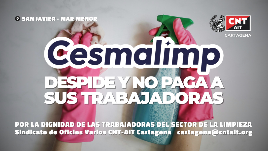 Zväz v meste Cartagena začal spor s upratovacou firmou Cesmalimp. Jedna z upratovačiek pracovala v ubytovniach vzdušných síl. Niekoľko mesiacov jej neviedli evidenciu odpracovaného času a nevyplatili jej niektoré výplaty. Stále chodila do práce, no napokon skončila na PNke, počas ktorej ju prepustili. Zväz sa preto rozhodol konať. Spor zatiaľ nie je ukončený.
