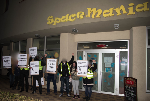Majiteľka Space Manie Viera Pearce ešte stále nevyplatila bývalej pracovníčke Mii zvyšnú dlžnú mzdu vo výške 222,44 €. Preto sme sa rozhodli, že sa jej v piatok 26. januára znova osobne pripomenieme a priamo v priestoroch Space Manie sa opýtame, kedy plánuje vyriešiť tento problém. Počas našej pokojnej návštevy sa síce manžel pani Pearce správal agresívne, no nepodarilo sa mu zastrašiť nás. S akciami prestaneme, až keď Space Mania vyplatí Mii dlžné peniaze.