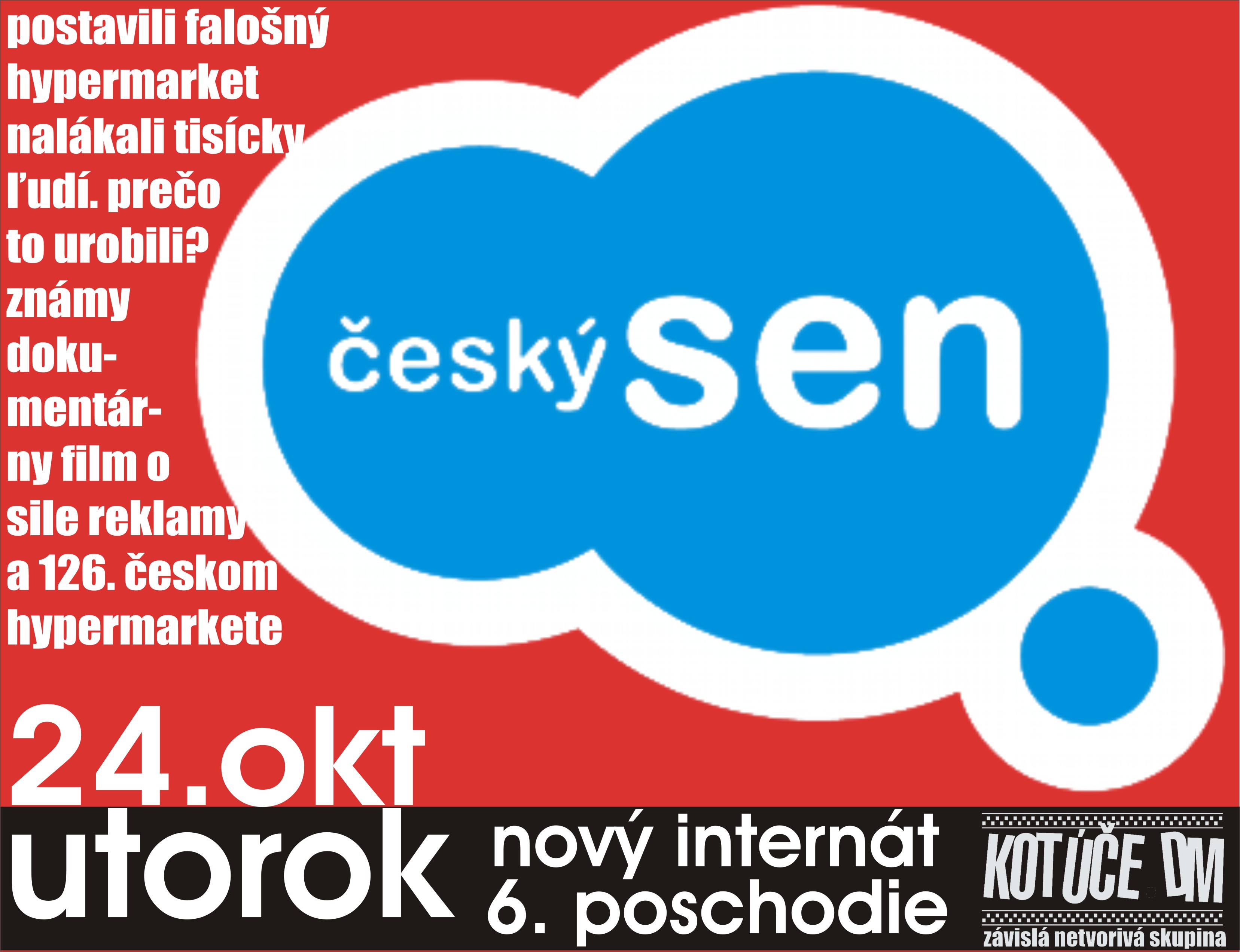 Závislá netvorivá skupina Kotúče DM pripravila na tento týždeň premietanie známeho českého dokumentárneho filmu Český sen.